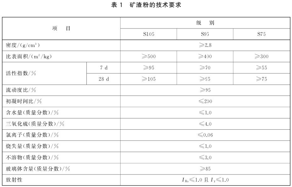 礦渣粉應(yīng)符合表1的規(guī)定。