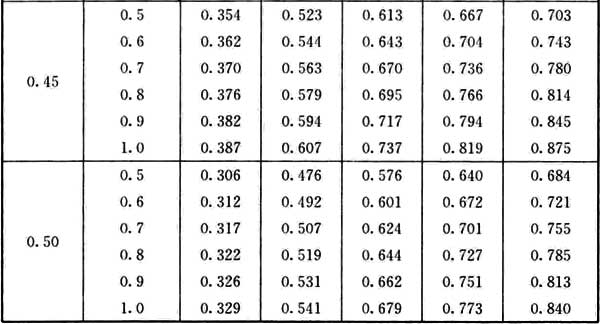表C 等代框架梁端部剛域計(jì)算長(zhǎng)度br與柱帽半寬的比值