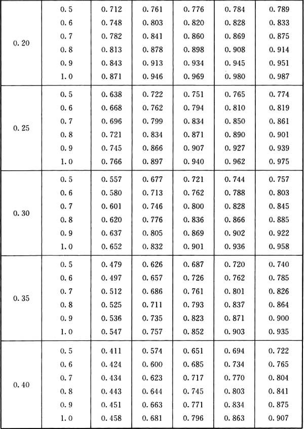 表A.0.1 變截面等代懸臂柱的截面剛度修正系數(shù)ξ
