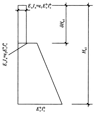 ξ2為能與鋼骨架共同工作的混凝土彈性模量Eca與柱底混凝土彈性模量Ebc之比值。