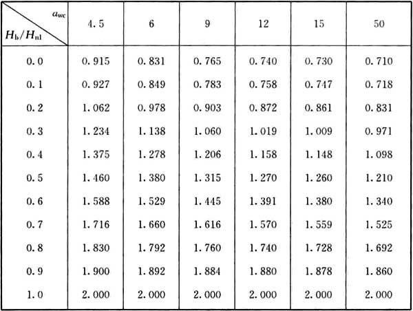 2 awc為筒體或剪力墻的剛度與群柱剛度之比。圖B中(c)、(d)所示變剛度柱的剛度可取ξEbcIbc,其中ξ按附錄A取用。圖B中(b)、(d)所示變剛度筒體,可先按在群柱與筒體連接處產(chǎn)生單位位移所要的作用力相等的原則折算成等剛度筒體,然后再查表B進(jìn)行計(jì)算。