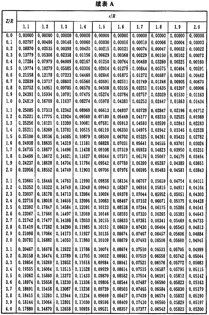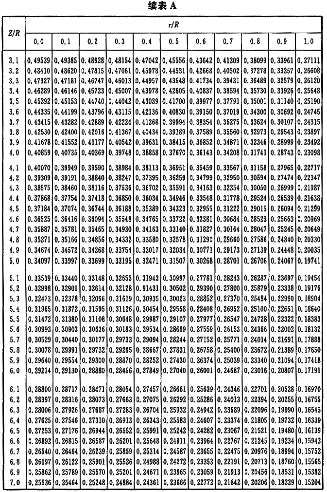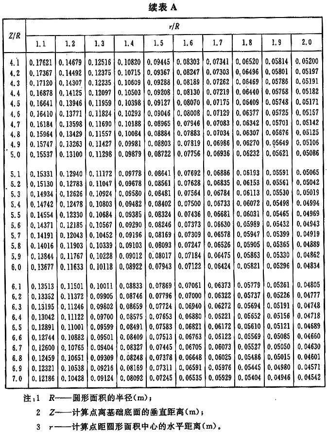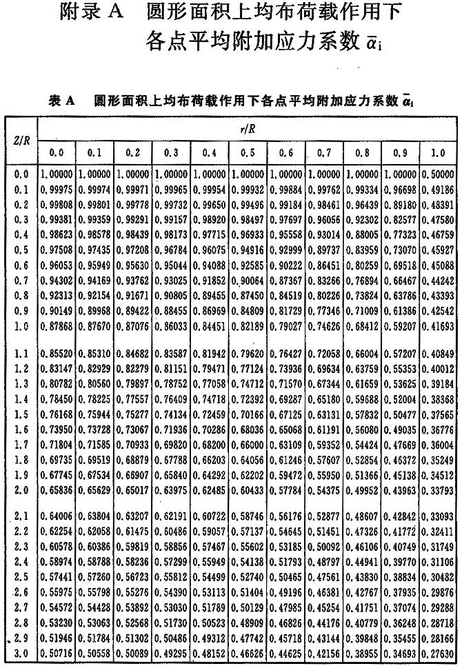 附錄A 圓形面積上均布荷載作用下各點平均附加應力系數(shù)