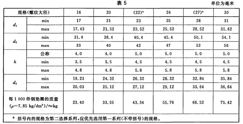 墊圈尺寸應(yīng)符合圖4及表5的規(guī)定。