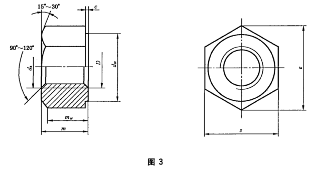 螺母尺寸應(yīng)符合圖3及表4的規(guī)定。