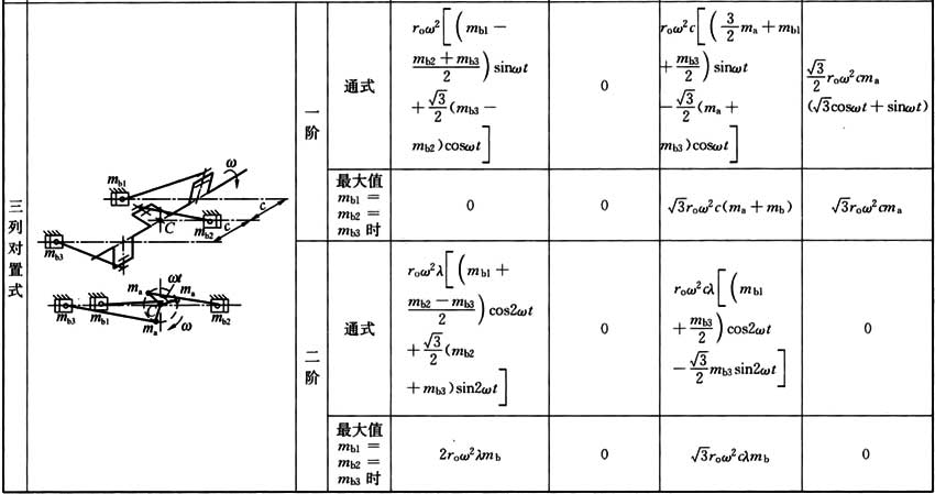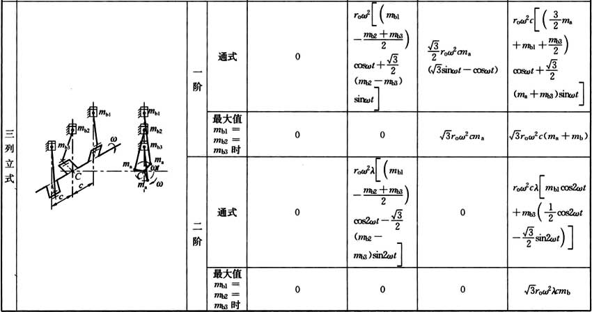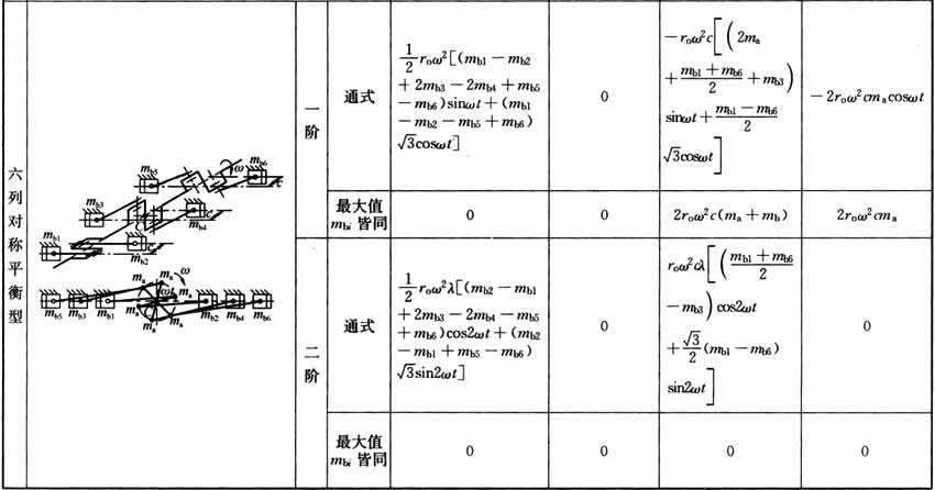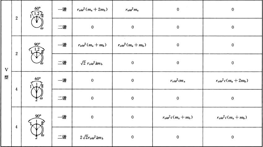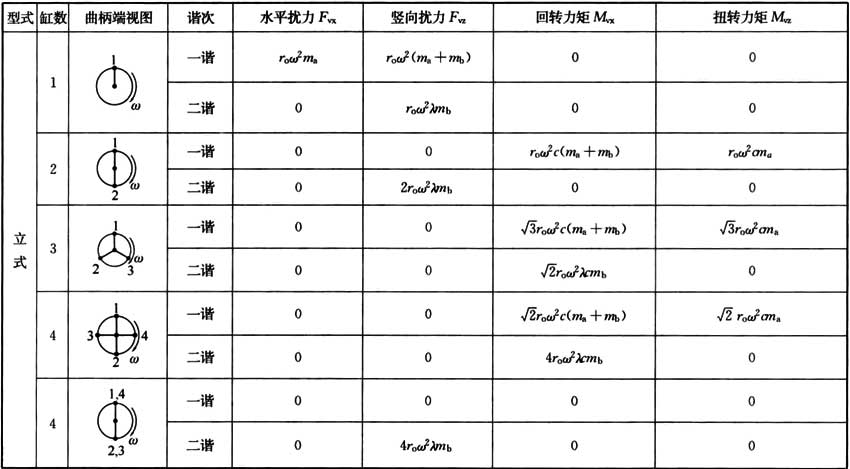 3 立式6缸和V型12缸及其以上機(jī)型的慣性力均已平衡,各項擾力和擾力矩均為0,未列入表中。
