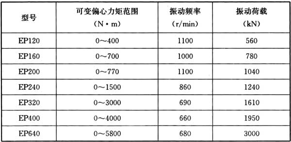 表14.0.2-2 EP系列液壓偏心力矩可調(diào)振動沉拔樁錘的振動荷載
