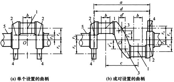 1-曲柄銷m1;2-曲柄臂(或端曲柄臂)m2;3-中間曲柄臂m′2;4-平衡質(zhì)量m4;5-主軸