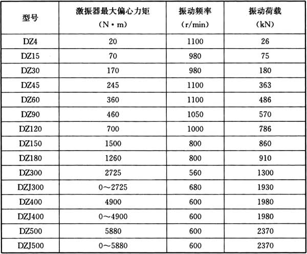 表14.0.2-1 DZ系列振動沉拔樁錘的振動荷載