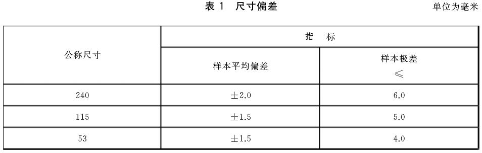 常用配磚規(guī)格:175mm×115mm×53mm,其他配磚規(guī)格由供需雙方協(xié)商確定。
