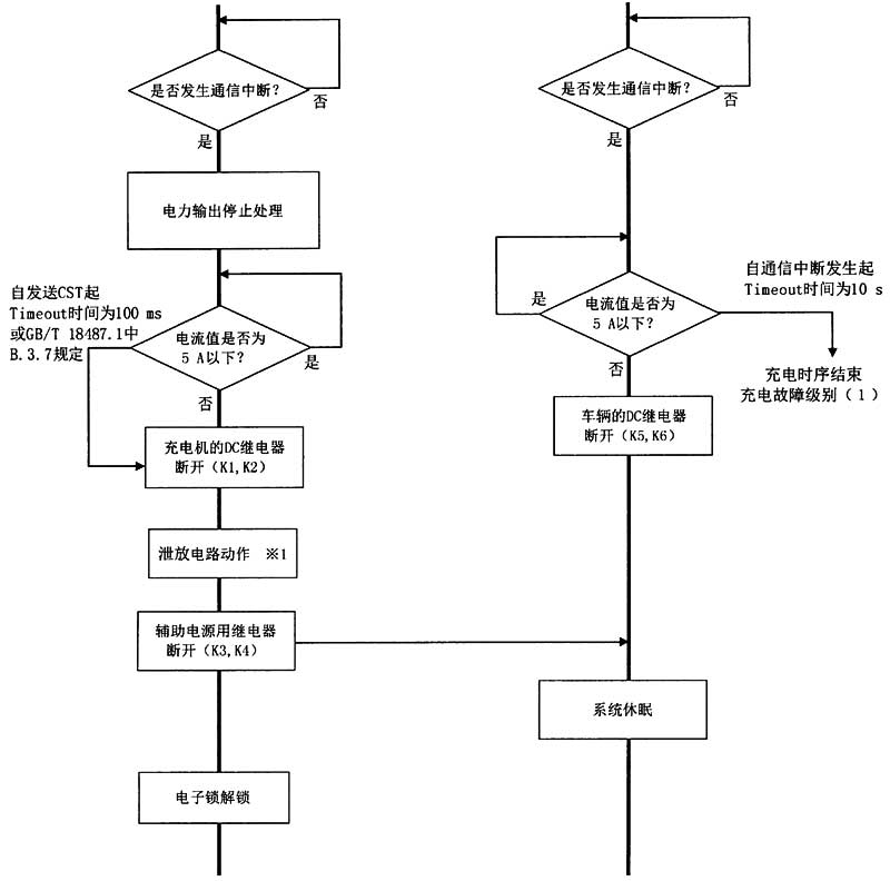 注3:當充電過程中發(fā)生電網停電故障,即使一段時間后供電自動恢復,也需要人工干預(處理方式b)后,再進行重新充電。