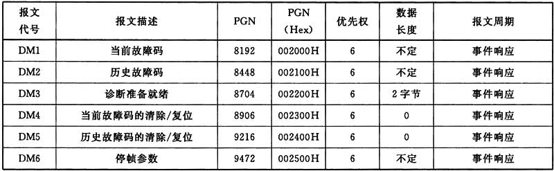 e)PGN9216診斷信息5,歷史故障碼的清除/復位報文(DM5)