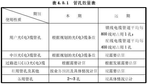 4.0.1管孔容量應(yīng)按業(yè)務(wù)預(yù)測及各運營商的具體情況計算,各段管孔數(shù)可按表4.0.1的規(guī)定估算。規(guī)劃綱要_文庫_工程咨詢