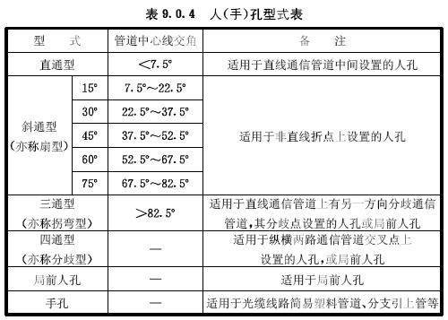 9.0.3人孔型式應(yīng)根據(jù)終期管群容量大小確定。綜合目前通信管道的建設(shè)和使用情況,人(手)孔型號的選擇宜按下列孔數(shù)選擇:大牛工程師
