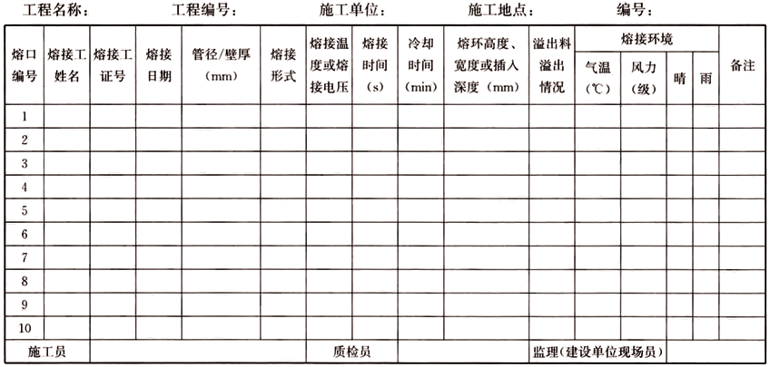 附錄C 熱熔對接焊口卷邊切除檢查記錄表