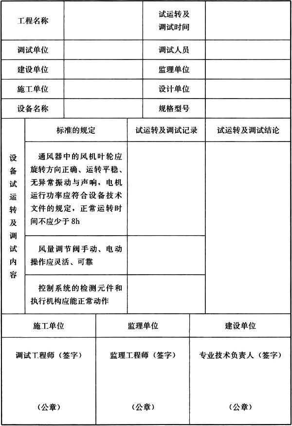 表 B.0.3 設(shè)備試運(yùn)轉(zhuǎn)及調(diào)試記錄