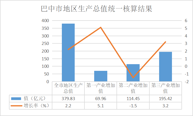 根據(jù)市(州)地區(qū)生產(chǎn)總值統(tǒng)一核算結(jié)果,2022年上半年全市地區(qū)生產(chǎn)總值379.83億元,按可比價(jià)格計(jì)算,同比增長(zhǎng)2.2%。分產(chǎn)業(yè)看,第一產(chǎn)業(yè)增加值69.96億元,增長(zhǎng)5.1%;第二產(chǎn)業(yè)增加值114.45億元,下降1.5%;第三產(chǎn)業(yè)增加值195.42億元,增長(zhǎng)3.2%。(四川?。┌椭惺?022年上半年經(jīng)濟(jì)運(yùn)行情況分析