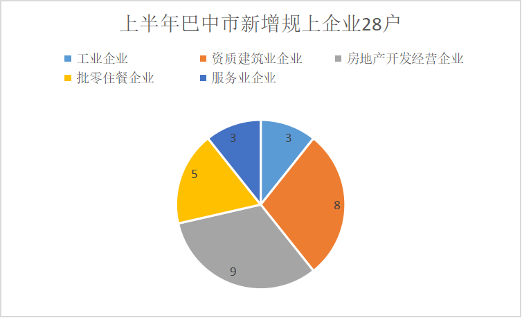上半年,巴中市新增規(guī)上企業(yè)28戶,比去年同期增加5戶,同比增長21.7%。其中,規(guī)上工業(yè)企業(yè)3戶、資質建筑業(yè)企業(yè)8戶、房地產開發(fā)經營企業(yè)9戶、批零住餐企業(yè)5戶、服務業(yè)企業(yè)3戶。同時,累計清退關停并轉規(guī)上企業(yè)29戶,消除了在庫空殼企業(yè),有力提升了數(shù)據質量。