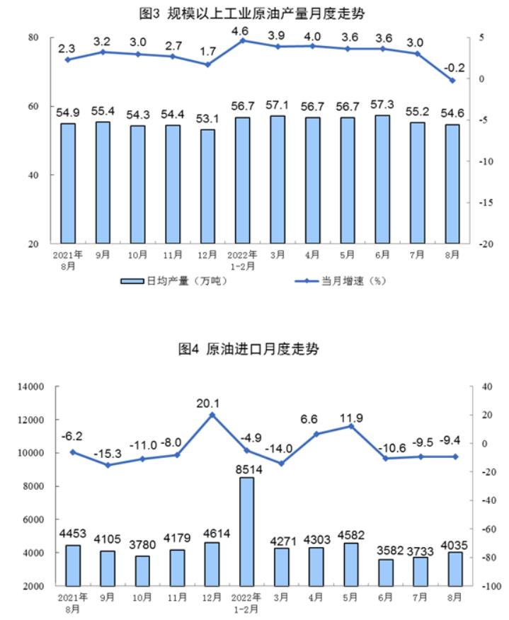 1—8月份,生產(chǎn)原油13694萬噸,同比增長3.2%。進口原油33018萬噸,同比下降4.7%。