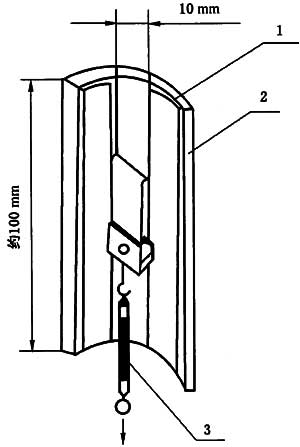 A.3.2 揭起一端,不要損傷涂層,用彈簧測力計將其向180°方向逐漸用力拉下,并觀察涂層發(fā)生剝離時的力,大于30N為合格。如果在拉的過程中涂層發(fā)生斷裂,應視為附著力符合要求。