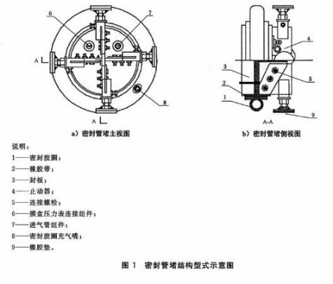管道端部管口及管道任意部位的封堵器具,一般成對配合使用,由封板、密封膠圈、橡膠帶和止動(dòng)器等組成。