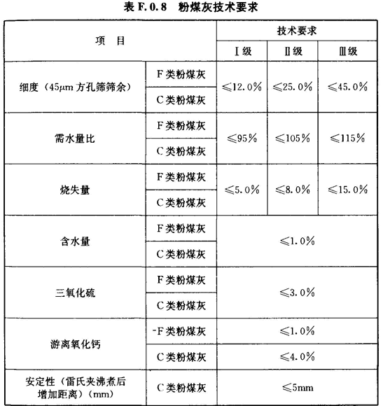 F.0.8 粉煤灰應符合表F.0.8的規(guī)定。