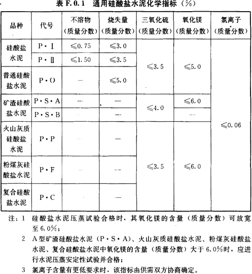 F.0.1 通用硅酸鹽水泥化學指標應符合表F.0.1的規(guī)定。