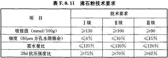 F.0.11 沸石粉應符合表F.0.11的規(guī)定。