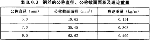 B.0.3 鋼絲的公稱直徑、公稱截面面積及理論重量,應符合表B.0.3的規(guī)定。