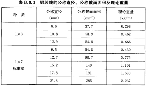 B.0.2 鋼絞線的公稱直徑、公稱截面面積及理論重量,應符合表B.0.2的規(guī)定。
