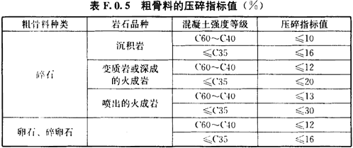 F.0.5 粗骨料的壓碎指標值應符合表F.0.5的規(guī)定。