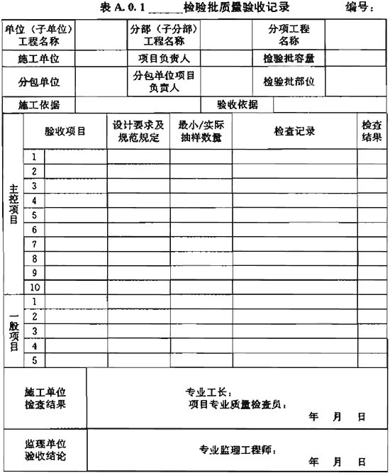 A.0.1 檢驗批質(zhì)量驗收可按表A.0.1記錄。