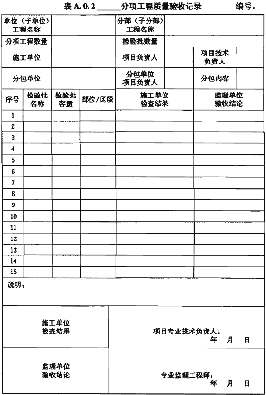 A.0.2 分項工程質(zhì)量驗收可按表A.0.2記錄。