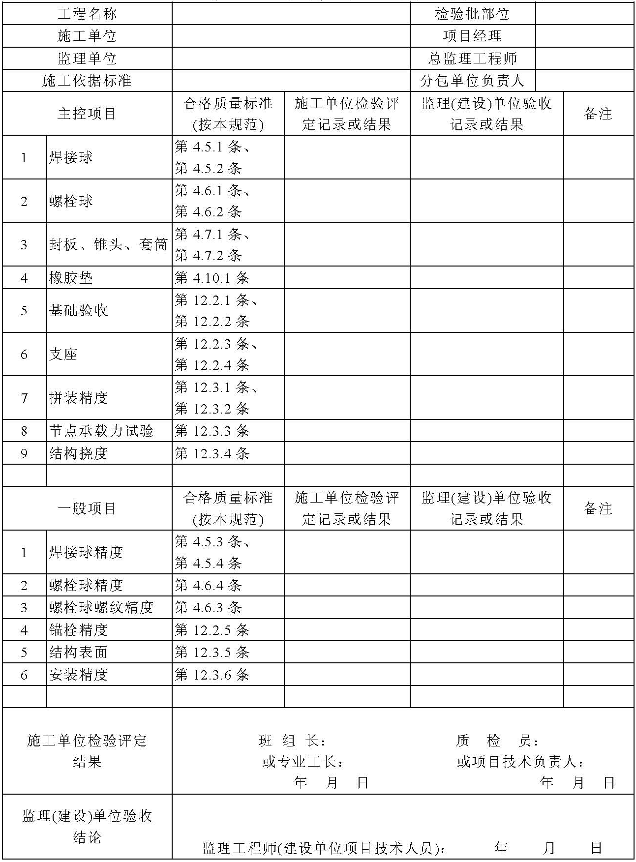J.0.10 鋼結(jié)構(gòu)(網(wǎng)架結(jié)構(gòu)安裝)分項(xiàng)工程檢驗(yàn)批質(zhì)量驗(yàn)收應(yīng)按表J.0.10進(jìn)行記錄。