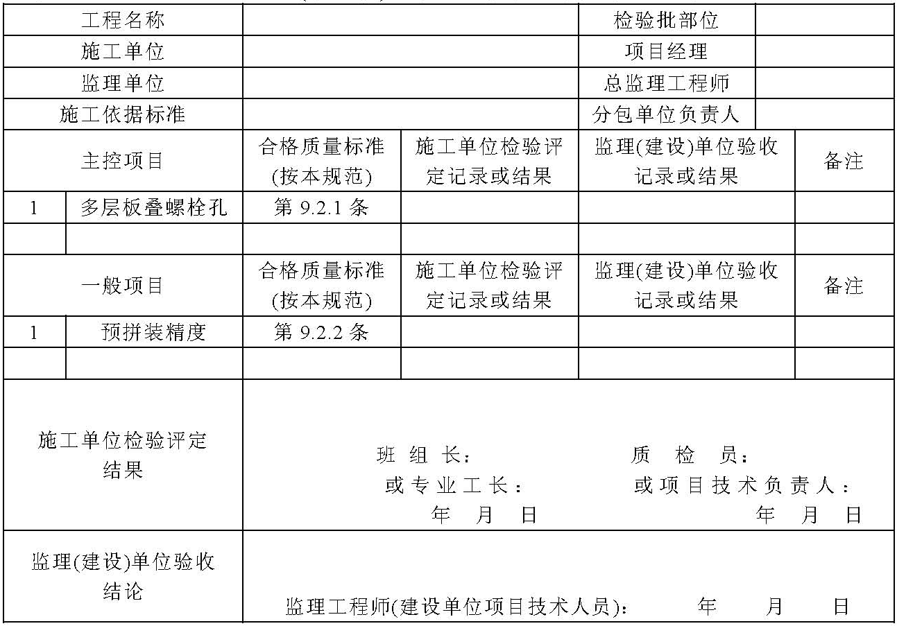 表J.0.7 鋼結(jié)構(gòu)(預(yù)拼裝)分項(xiàng)工程檢驗(yàn)批質(zhì)量驗(yàn)收記錄