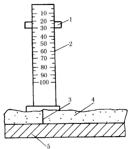 1——標(biāo)尺;2——刻度;3——測(cè)針;4——防火涂層;5——鋼基材