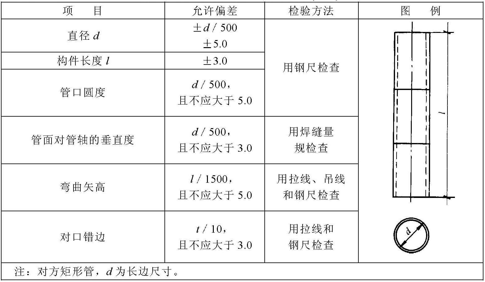 表C.0.7 鋼管構(gòu)件外形尺寸的允許偏差(mm)