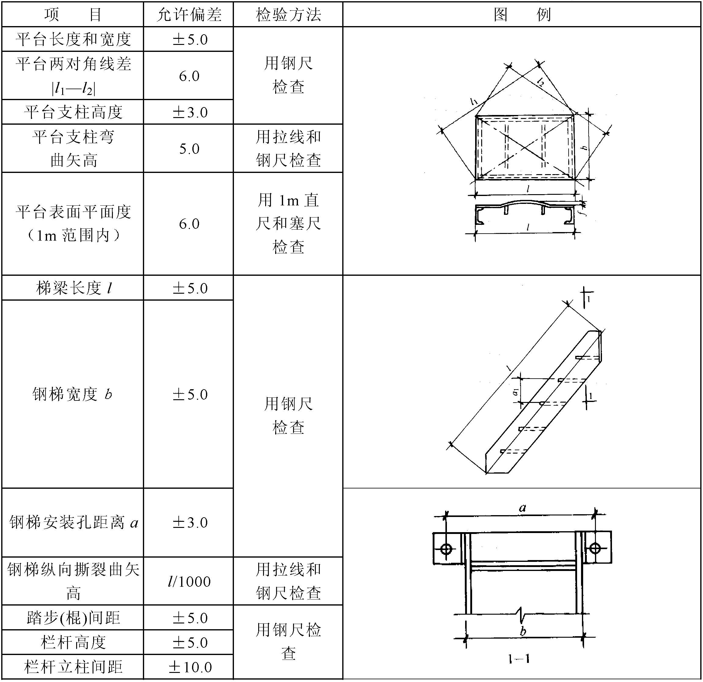 表E.0.4 鋼平臺(tái)、鋼梯和防護(hù)欄桿安裝的允許偏差(mm)