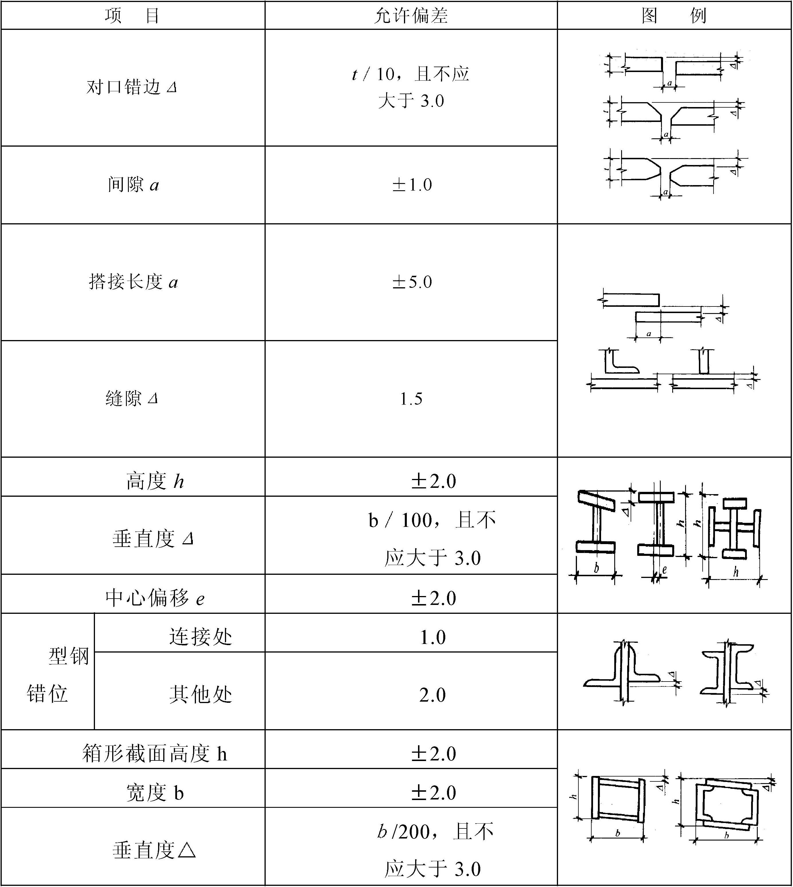 表C.0.2 焊接連接制作組裝的允許偏差(mm)