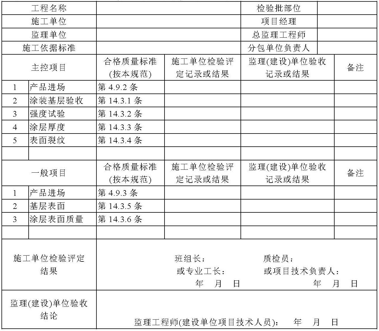 表J.0.13 鋼結(jié)構(gòu)(防火涂料涂裝)分項(xiàng)工程檢驗(yàn)批質(zhì)量驗(yàn)收記錄