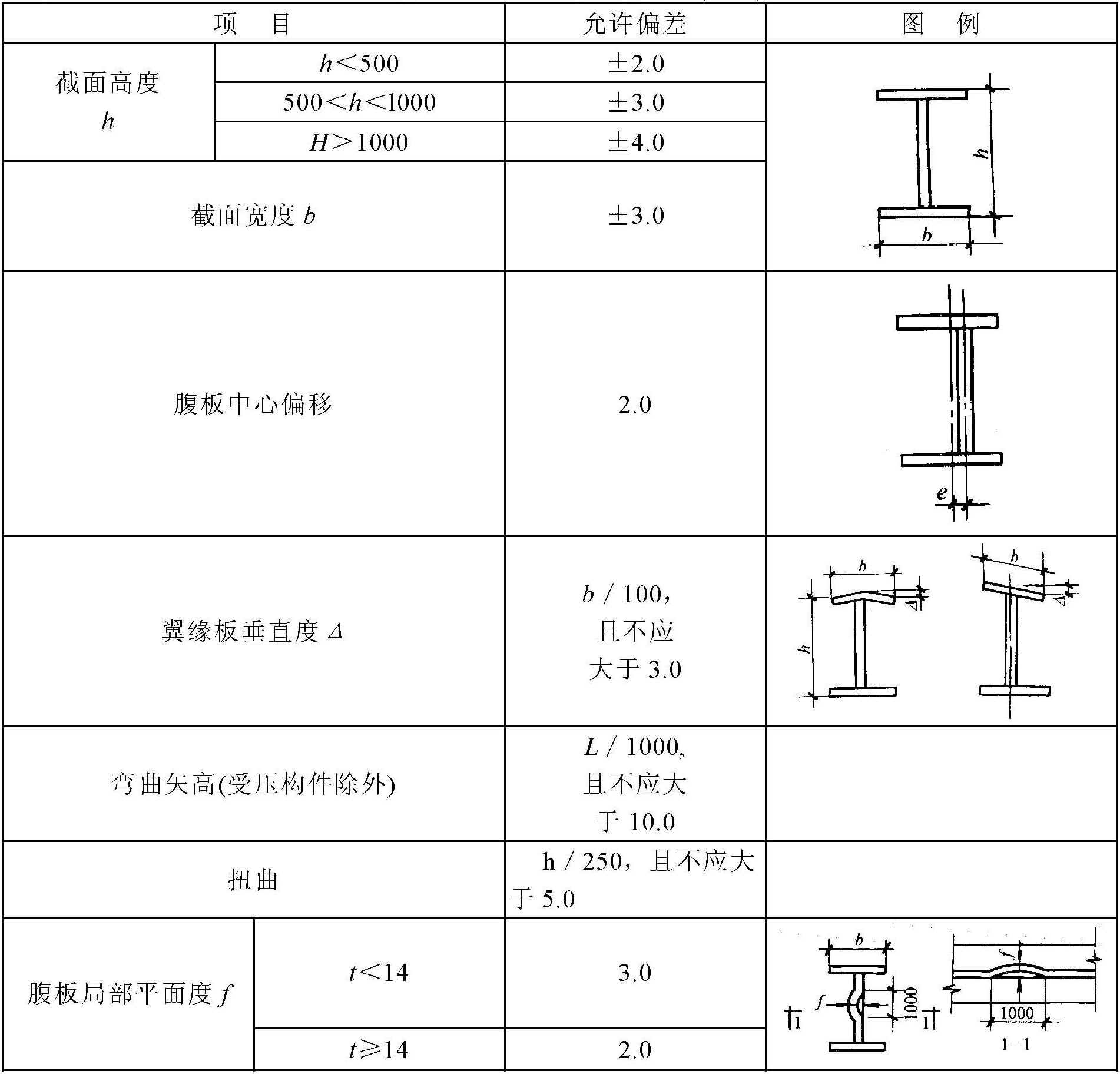 表C.0.1 焊接H型鋼的允許偏差(mm)