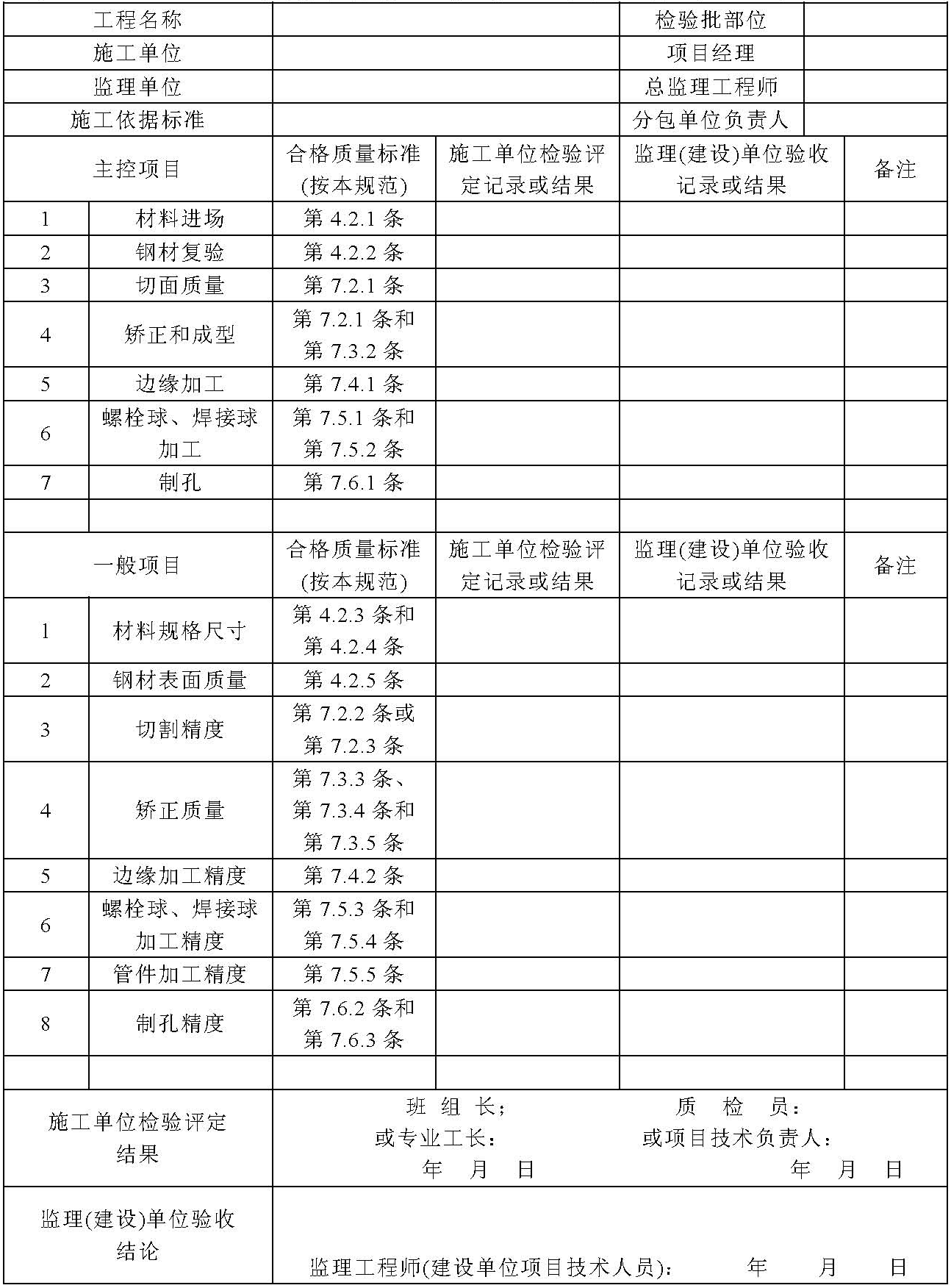 表J.0.5 鋼結(jié)構(gòu)(零件及部件加工)分項(xiàng)工程檢驗(yàn)批質(zhì)量驗(yàn)收記錄