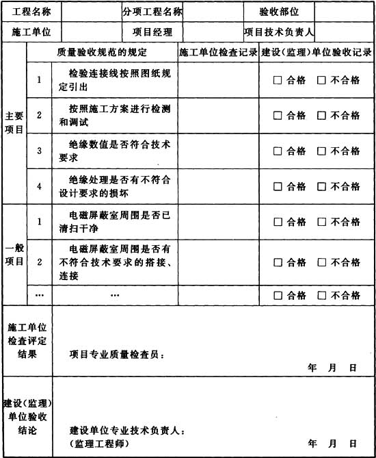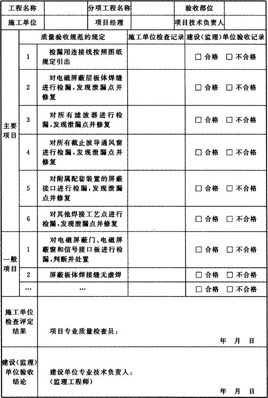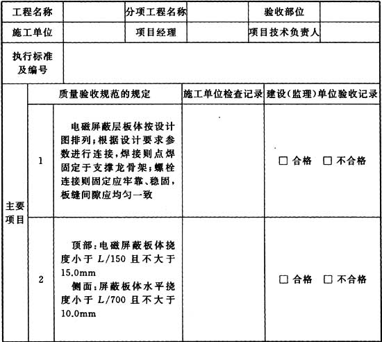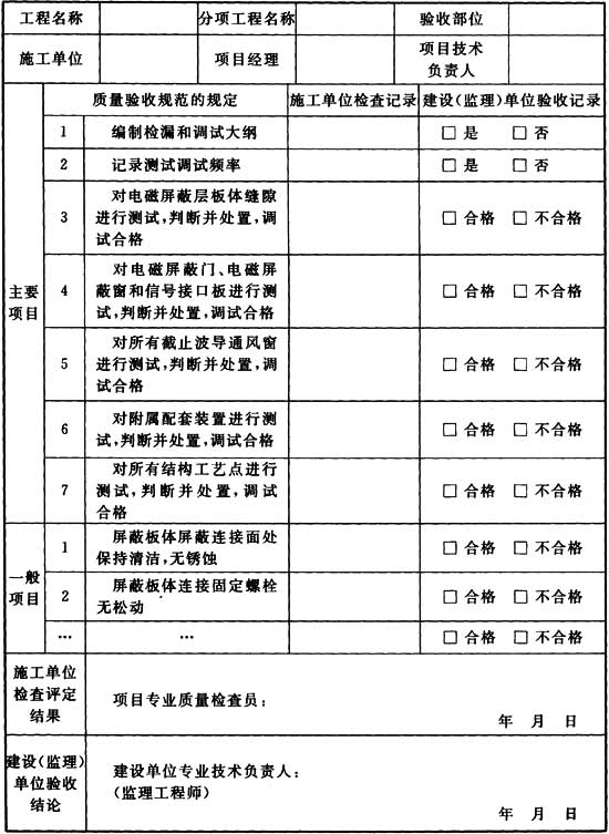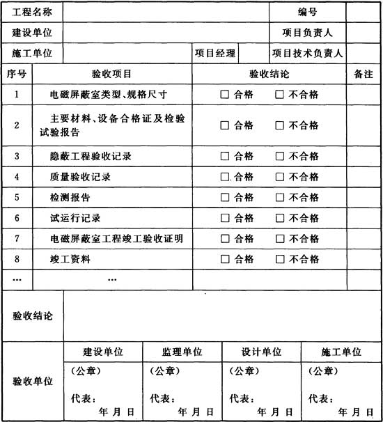 表D.0.1 電磁屏蔽室工程竣工驗收記錄表