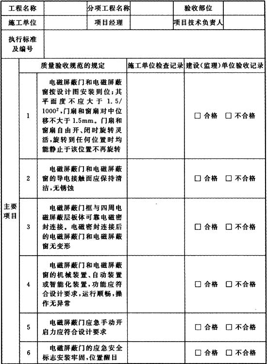 表C.0.4 電磁屏蔽門和電磁屏蔽窗質量驗收記錄表