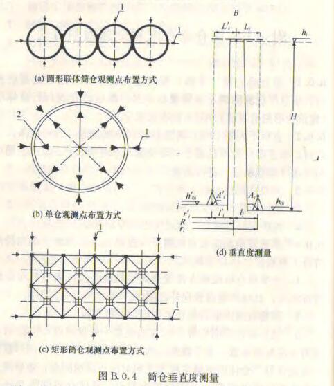 B.0.1 筒倉垂直度(全高)檢測應(yīng)在倉壁結(jié)構(gòu)施工完成后進(jìn)行。垂直度觀測除滿足附錄要求外,尚應(yīng)符合現(xiàn)行行業(yè)標(biāo)準(zhǔn)《建筑變形測量規(guī)范》JGJ 8的有關(guān)規(guī)定。