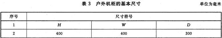 戶外機(jī)柜的基本尺寸見圖3和表3。
