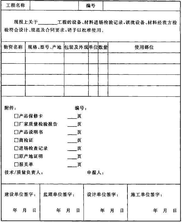 附錄B 設(shè)備、材料進場報驗單大牛工程師