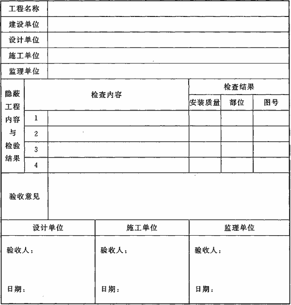 2 綜合安裝質(zhì)量的檢查結(jié)果,在驗收欄內(nèi)填寫驗收意見并扼要說明情況。