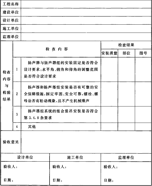 附錄D 揚聲器系統(tǒng)安裝隨工驗收單