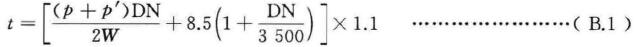B.1 球墨鑄鐵材料閥體最小壁厚應按式(B.1)進行計算: