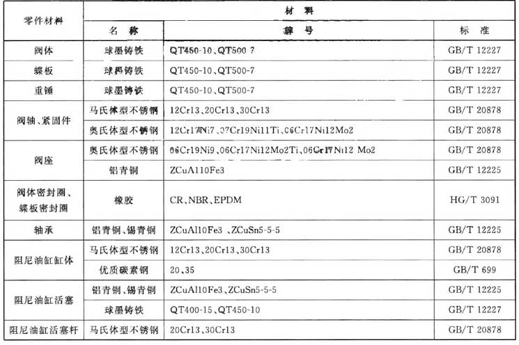 止回閥主要零件材料應符合表1的規(guī)定,也可選用機械性能相當或高于表中材料的其他材料。